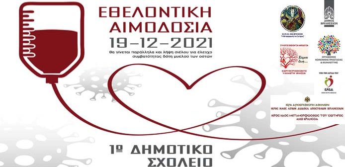 Νέα προγραμματισμένη Εθελοντική Αιμοδοσία στο Δήμο Βριλησσίων, την Κυριακή 19 Δεκεμβρίου 2021, μέσω του Οργανισμού Κοινωνικής Προστασίας & Αλληλεγγύης πάντα σε συνεργασία με τους φορείς αιμοδοσίας της πόλης: