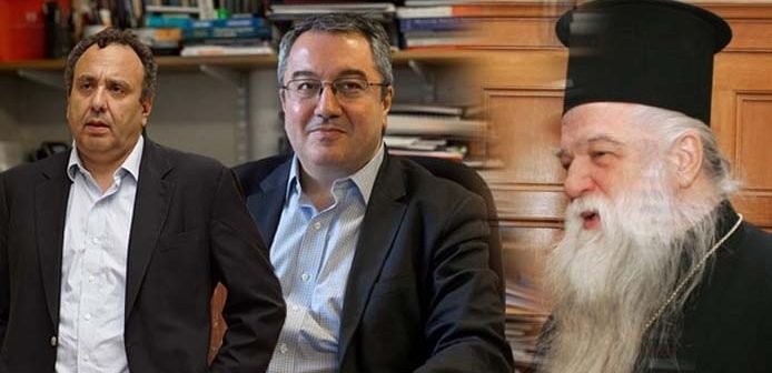 O πρώην Μητροπολίτης Αιγιαλείας και Καλαβρύτων Αμβρόσιος ξαναχτύπησε! Σήμερα το πρωί κατά τη διάρκεια της θείας Λειτουργίας στον Ι.Ν. Φανερωμένης Αιγίου, αφόρισε τον συγγραφέα Χρήστο Χωμενίδη και τον καθηγητή Πολιτικής της Υγείας Ηλία Μόσιαλο!