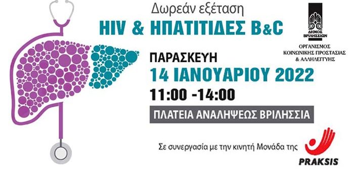 Ο Δήμος Βριλησσίων μέσω του Οργανισμού Κοινωνικής Προστασίας & Αλληλεγγύης σε συνεργασία με την PRAKSIS στο πλαίσιο των ανθρωπιστικών και ιατρικών προγραμμάτων της για τη Δημόσια Υγεία, πραγματοποιεί μηνιαίο κύκλο παρεμβάσεων με σκοπό το τρίπτυχο «ενημέρωση – πρόληψη – εξέταση» για τον ιό HIV και τις Ηπατίτιδες B&C.