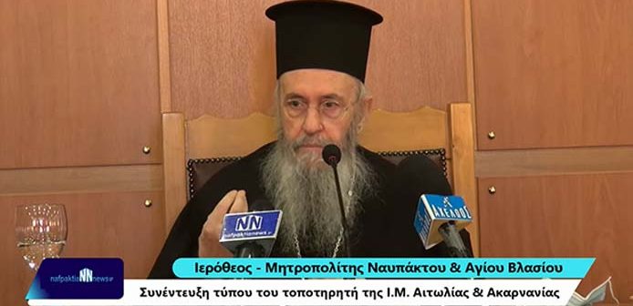 Ο Σεβασμιώτατος Μητροπολίτης Ναυπάκτου και Αγίου Βλασίου κ. Ιερόθεος, ως Τοποτηρητής της Ιεράς Μητροπόλεως Αιτωλίας και Ακαρνανίας, έδωσε συνέντευξη Τύπου στους δημοσιογράφους όλου του Νομού, την Τετάρτη 26 Ιανουαρίου 2022, στην Αίθουσα Συνεδριάσεων του Συμβουλίου της Περιφερειακής Ενότητας Αιτωλοακαρνανίας (Διοικητήριο) στην Ιερά Πόλη Μεσολογγίου.