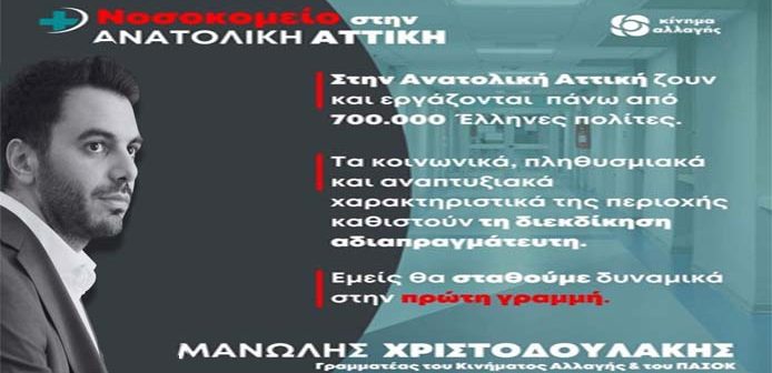 Προκύπτει, λοιπόν, με τρόπο αδιαπραγμάτευτο και αναμφισβήτητο, η ώριμη ανάγκη για τη δημιουργία Νοσοκομείου στην περιοχή της Ανατολικής Αττικής. Και μαζί με αυτό, για την αναβάθμιση των υπαρχόντων δομών υγείας, έτσι ώστε το δίκτυο των Κέντρων Υγείας που και σήμερα λειτουργεί στην περιοχή, με την ταυτόχρονη συμπλήρωση πρωτοβάθμιων δομών εκεί που δεν υπάρχουν, να μπορεί να υποστηρίξει την λειτουργία ενός σύγχρονου και ποιοτικού Νοσοκομείου Αναφοράς.