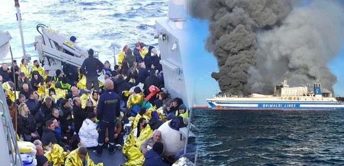 Διασωληνώθηκε το ένα από τα δύο άτομα που διασώθηκαν από φλεγόμενο πλοίο Euroferry Olympia
