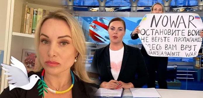 Πρόστιμο που φτάνει τα 30.000 ρούβλια (κάτι λιγότερο από 250 ευρώ) επιβλήθηκε στη Ρωσοουκρανή δημοσιογράφο που διέκοψε τη ζωντανή μετάδοση του δελτίου ειδήσεων του Καναλιού 1 (Первый канал) στη Ρωσία για να διαμαρτυρηθεί κατά του πολέμου στην Ουκρανία.