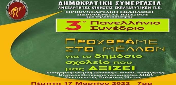 Στα πλαίσια του προσυνεδριακού διαλόγου της Δημοκρατικής Συνεργασίας σας καλούμε να πάρετε μέρος με τηλεδιάσκεψη στην εκδήλωση της ΔΗ.ΣΥ. Περιφέρειας Ηπείρου την Πέμπτη 17 Μαρτίου 2022 στις 7 μμ. Κεντρικός ομιλητής της εκδήλωσης θα είναι ο τ. αναπλ. Καθηγητής του Παιδαγωγικού Τμήματος Νηπιαγωγών του Πανεπιστημίου Ιωαννίνων Θωμάς Μπάκας. Θέμα της ομιλίας: «Η οργάνωση και λειτουργία της Σχολικής Μονάδας»