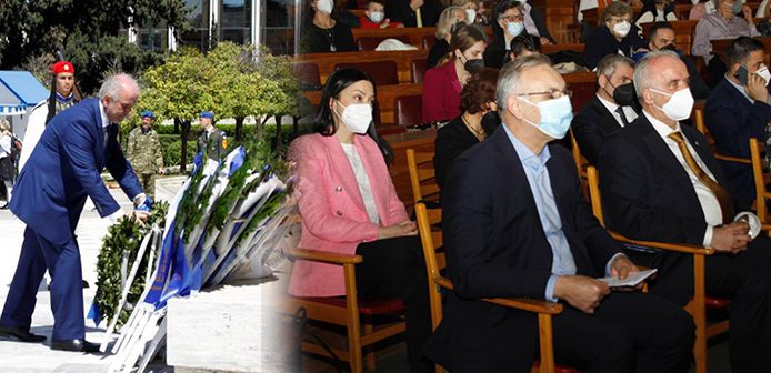 Εν συνεχεία με Πομπή προς το Μνημείο του «Αγνώστου Στρατιώτη» με την συνοδεία της φιλαρμονικής του δήμου μας και αντιπροσωπείας «Αη-Συμιωτών» έγινε κατάθεση στεφάνων και ανάκρουση του Εθνικού Ύμνου.