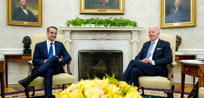 Όπως ήταν λογικό η συζήτηση των δύο ηγετών περιεστράφη γύρω από το Ουκρανικό και το ενιαίο δυτικό μέτωπο κατά της ρωσικής εισβολής, αλλά και στο πως οι ΗΠΑ θα συμβάλλουν εμπράκτως ώστε να απεξαρτηθεί η Ευρώπη από το ρωσικό φυσικό αέριο., Πολλή συζήτηση έγινε σύμφωνα με τις ίδιες πηγές και για τη μετατροπή της Αλεξανδρούπολης σε περιφερειακό ενεργειακό κόμβο, αλλά και τις πολλές και σημαντικές πλέον αμερικανικές επενδύσεις στην Ελλάδα., Κατά τις επαφές των δύο ανδρών κατέστη σαφές, εξάλλου, πάντα σύμφωνα με τις ίδιες πηγές πως η Ελληνική δημοκρατία έχει πλέον αποδείξει την ανθεκτικότητα της καθώς υπερέβη τα δύσκολα χρόνια της οικονομικής κρίσης με την οικονομία να εξέρχεται ισχυρότερη και τους θεσμούς να καθίστανται πιο θωρακισμένοι., Η ελληνική πλευρά, εξέφρασε, μάλιστα την επιθυμία η διμερής συνεργασία να επεκταθεί σε όλους τους δυνατούς τομείς ενώ ο Κυριάκος Μητσοτάκης εξέφρασε την ελπίδα να μπορέσει ο κ. Μπάιντεν να επισκεφθεί την προσεχώς την Ελλάδα., Ο Κυριάκος Μητσοτάκης επίσης έθεσε υπ’ όψιν του πρόεδρου Μπάϊντεν όλες τις λεπτομέρειες, που αφορούν στην εντεινόμενη εσχάτως τουρκική προκλητικότητα και δη τις υπερπτήσεις πάνω από κατοικημένα ελληνικά νησιά., «Είναι πλέον σαφές πως άπαντες αντιλαμβάνονται πως ο επεκτατισμός και ο αναθεωρητισμός δεν έχουν θέση σε ένα παγκόσμιο σκηνικό που γίνεται ολοένα και πιο σύνθετο» σημείωναν μετά τη συνάντηση στο Λευκό Οίκο αρμόδιες κυβερνητικές πηγές επιβεβαιώνοντας πως το ζήτημα της τουρκικής προκλητικότητας δεν ετέθη αυτοτελώς αλλά ως μέρος των ζητημάτων ασφάλειας στην Ανατολική Μεσόγειο., Σύμφωνα με τον ΣΚΑΪ, ο Έληνας πρωθυπουργός έδειξε στον Αμερικανό πρέοδρο τον χάρτη της “Γαλάζιας Πατρίδας” που επικαλούνται συνεχώς οι Τούρκοι., Σε ό,τι αφορά στο ζήτημα της πώλησης αμερικανικών μαχητικών F – 16 προς την Τουρκία αρμόδια κυβερνητική πηγή παρέπεμπε στη σημερινή ομιλία του Έλληνα πρωθυπουργού προς το Κογκρέσο, τονίζοντας, πάντως με νόημα πως ορισμένα ζητήματα είναι καλύτερο να μην συζητούνται δημοσίως., Οι ίδιες πηγές, εξάλλου, τόνιζαν ότι ο Έλληνας πρωθυπουργός αναφέρθηκε στο Κυπριακό χωρίς να «μασήσει» τα λόγια του διαμηνύοντας εκ νέου πως δεν μπορεί να γίνει αποδεκτή μία λύση δύο κρατών στη Μεγαλόνησο., Κυβερνητικές πηγές επιβεβαίωσαν, εξάλλου, πως στο πλαίσιο της διμερούς αμυντικής συνεργασίας είναι ειλημμένη η απόφαση της Αθήνας ότι το μαχητικό αεροσκάφος 5ης γενιάς, που θα επανδρώσει την Πολεμική Αεροπορία θα είναι το αμερικανικό F – 35., Σύμφωνα με τις ίδιες πηγές, ο Κυριάκος Μητσοτάκης εξέφρασε την επιθυμία να ενταχθεί η χώρα μας στο συγκεκριμένο πρόγραμμα ξεκαθαρίζοντας πως η Ελλάδα ενδιαφέρεται να αγοράσει μία μοίρα F – 35 πριν από το τέλος της τρέχουσας 10ετίας, και συγκεκριμένα μετά το 2028, όταν και όπως ειπώθηκε με έμφαση θα υπάρχει ο απαραίτητος δημοσιονομικός χώρος για μία τέτοια κίνηση., Στα αξιοσημείωτα της συνάντησης Μητσοτάκη – Μπάιντεν στο Λευκό Οίκο και η συναντίληψη των δύο ηγετών στο ζήτημα της μείωσης της τιμής του φυσικού αερίου διεθνώς μέσω της επιβολής πλαφόν., Σε ό,τι αφορά στον αγωγό Eastmed η ελληνική πλευρά επανέλαβε τις θέσεις της πως την τελική επιλογή, εάν δηλαδή θα προκριθεί η λύση του αγωγού ή αυτή της μεταφοράς υγροποιημένου φυσικού αερίου θα την καθορίσουν εν τέλει η αγορά και το κόστος. Επαναβεβαιώθηκε, πάντως, η θερμή αμερικανική υποστήριξη 