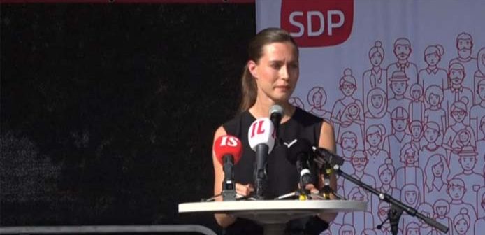 «Είμαι ένα ανθρώπινο ον. Προσβλέπω επίσης μερικές φορές στη χαρά, στο φως και στην ευχαρίστηση, εν μέσω αυτών των σκοτεινών νεφών» είπε, με τρεμάμενη φωνή, στη διάρκεια μιας εκδήλωσης που διοργάνωσε το κόμμα της, το Σοσιαλδημοκρατικό Κόμμα (SDP), στην πόλη Λάχτι τής νότιας Φινλανδίας.
