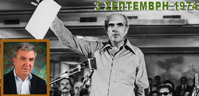 3η Σεπτέμβρη 1974, ο Ανδρέας Παπανδρέου με μια μικρή ομάδα αγωνιστών κατά της δικτατορίας και του ανένδοτου αγώνα παρουσιάζει τη «Διακήρυξη – το Μανιφέστο» της ίδρυσης του ΠΑ.ΣΟ.Κ., του κόμματος που άλλαξε την Ελλάδα, που έφερε στο προσκήνιο το λαό και τις δημιουργικές κοινωνικές δυνάμεις, που έκανε την πολιτική και τη δημόσια ζωή υπόθεση όλων των Ελλήνων.