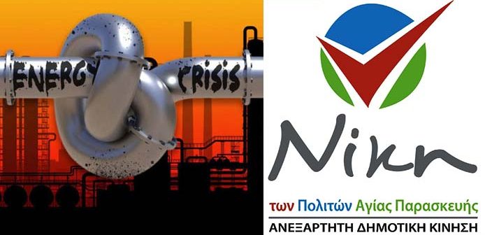 Εμείς, η Ανεξάρτητη Δημοτική Κίνηση «ΝΙΚΗ των ΠΟΛΙΤΩΝ Αγ. Παρασκευής» θεωρούμε ότι είναι άμεση ανάγκη να συγκροτηθεί Διαπαραταξιακή επιστημονική ομάδα με συμμετοχή στελεχών της Τεχνικής Υπηρεσίας για τη διαχείριση της ενεργειακής κατανάλωσης και κρίσης.