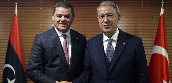 Millî Savunma Bakanı Hulusi Akar’ın, Libya Başbakanı ve Savunma Bakanı Abdulhamid Dibeybe ile görüşmesinde; Türkiye’nin Libyalı kardeşlerine destek kapsamında askerî eğitim, yardım ve danışmanlık faaliyetlerini sürdürmekteki kararlılığı ifade edildi.https://t.co/fR3ZfDPWE3 pic.twitter.com/J05eKKcYln