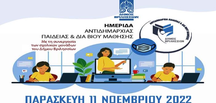 Ημερίδα για την παιδεία πραγματοποιεί ο Δήμος Βριλησσίων την Παρασκευή 11 Νοεμβρίου 2022, στο Πάρκο «Μίκης Θεοδωράκης (πρώην ΤΥΠΕΤ), στις 18.00.