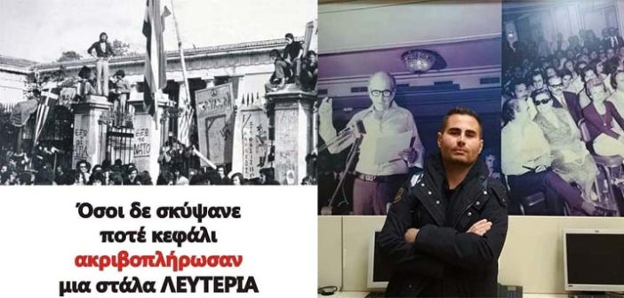 Ήταν εξέγερση και πάλη λαϊκή….Είναι δύσκολο να γράψεις κάποιες αράδες για αυτήν την ιστορική στιγμή της πατρίδας…Κινδυνεύεις…να πλατειάσεις, να τεθείς εκτός θέματος, να πεις τα τετριμμένα…49 χρόνια μετά, χρόνια που χαρακτηρίζουν μια γενιά ολόκληρη ,οφείλουμε να επαναχαράξουμε την πορεία μας ως πολίτες, να επαναδιαπραγματευθούμε τη στάση μας στην Παιδεία, στην Ελευθερία, στο Ψωμί που καθημερινά διεκδικούμε κάτω από δύσκολες συνθήκες…
