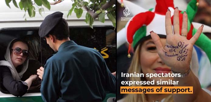 - Κατά τη διάρκεια των διαδηλώσεων, γυναίκες κινηματογραφήθηκαν να βγάζουν τις μαντίλες τους και να τις καίνε ενώ το «ΓΥΝΑΙΚΑ, ΖΩΗ, ΕΛΕΥΘΕΡΙΑ» έχει γίνει μια κραυγή συγκέντρωσης και ένας τρόπος για να δείξουν αλληλεγγύη τόσο εντός όσο και εκτός Ιράν.