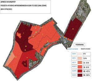 «Στο συγκεκριμένο παράδειγμα, όπως και στις υπόλοιπες 14 περιπτώσεις που αναλυτικά αναφέρονται στην απόφαση του Δ.Σ., αποδεικνύεται πλήρως ότι οι από 1η Ιανουαρίου 2022 αυξήσεις των αντικειμενικών αξιών υπερέβησαν κατά πολύ ακόμα και τις πραγματικές εμπορικές τιμές και πρέπει γι’ αυτό να μειωθούν ανάλογα», σημείωσε ο δήμαρχος Χαλανδρίου Σίμος Ρούσσος, εισηγούμενος το θέμα. Όπως τόνισε ο ίδιος, στο 48,44% των περιοχών του Χαλανδρίου, στη μισή πόλη ουσιαστικά, η αύξηση των αντικειμενικών ξεπερνά το 40% ενώ στην άλλη μισή (ποσοστό 46,68%) η αύξηση φτάνει το 35%. Είναι αποκαλυπτικός ο χάρτης που επισυνάπτεται.
