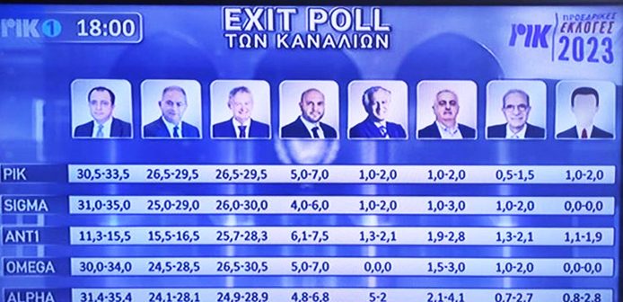 Στις 6 το απόγευμα έκλεισαν οι κάλπες για τις προεδρικές εκλογές και οι τηλεοπτικοί σταθμοί έδωσαν στη δημοσιότητα τα αποτελέσματα των exit poll, με βάση τα οποία προηγείται ο Νίκος Χριστοδουλίδης.