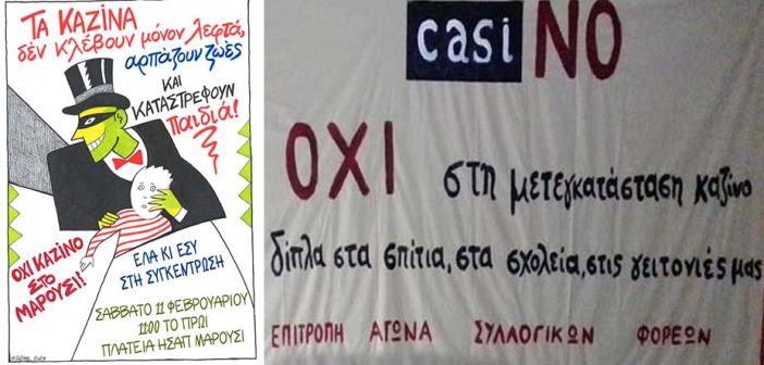Η Συντονιστική Επιτροπή Αγώνα κατά της μετεγκατάστασης του καζίνο Πάρνηθας στο Μαρούσι με ανακοίνωσή της, καλεί σε συγκέντρωση διαμαρτυρίας τους πολίτες, Σαββάτο 11 Φεβρουαρίου 2023, ώρα 11:00πμ πλατεία Ευτέρπης (σταθμός ηλεκτρικού, Μαρούσι)