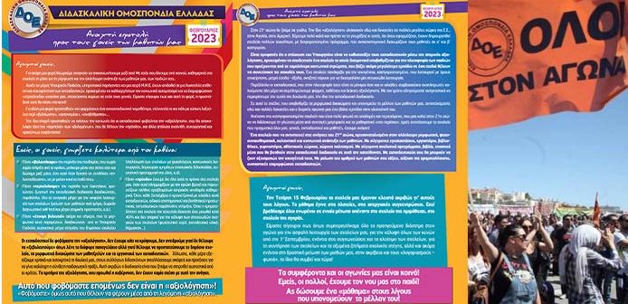 Για ακόμη μια φορά θεωρούμε αναγκαίο να επικοινωνήσουμε μαζί σας! Με εσάς που δίνουμε από κοινού, καθημερινά στα σχολεία τη μάχη για τη μόρφωση και την ολόπλευρη ανάπτυξη των μαθητών μας, των παιδιών σας..