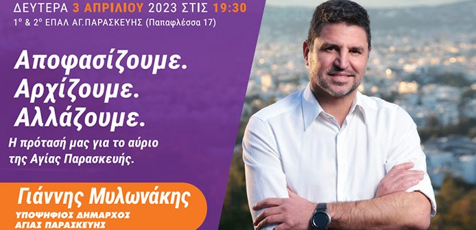 Πρόσκληση στην Ανοιχτή Εκδήλωση του Ανεξάρτητου Συνδυασμού «Αλλάζουμε την Αγία Παρασκευή» – Αποφασίζουμε, Αρχίζουμε, Αλλάζουμε