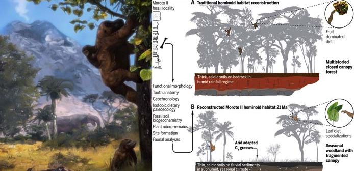 Η έρευνα επικεντρώθηκε σε έναν απολιθωμένο πίθηκο 21 εκατομμυρίων ετών που ονομάζεται «Morotopithecus» και οι επιστήμονες διαπίστωσαν ότι οι πρώιμοι πίθηκοι της εποχής εκείνης έτρωγαν φύλλα και ζούσαν σε ένα εποχιακό δάσος με ανοιχτές χλοερές εκτάσεις και όχι σε πυκνά δάση με θόλο, όπως υπήρχε η πεποίθηση μέχρι σήμερα.