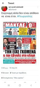 Ο κ. Μάντζος καταγγέλλει ότι «η υποψήφια βουλευτής, περιφερειακή σύμβουλος και μέλος του τομέα Αθλητισμού του ΣΥΡΙΖΑ, Ζωή Βαρέλη Στεφανίδη, αναπαράγει και υιοθετεί στο twitter κατάπτυστα και ψευδή δημοσιεύματα της εφημερίδας Μακελειό».