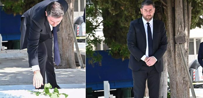 O πρόεδρος του ΠΑΣΟΚ, Νίκος Ανδρουλάκης επισκέφθηκε σήμερα Τετάρτη (24/5), αμέσως μετά τη λήξη της σύσκεψης των πολιτικών αρχηγών υπό την Πρόεδρο της Δημοκρατίας στο Προεδρικό Μέγαρο, τον τάφο της Φώφης Γεννηματά στο Α’ Νεκροταφείο σήμερα.