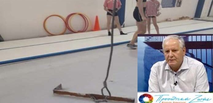 Πριν από λίγες ημέρες, στην αίθουσα της Ενόργανης Γυμναστικής, που βρίσκεται κάτω από τις κερκίδες του Δημοτικού Σταδίου, έπεσε από την οροφή μία Σκουριασμένη Μεταλλική Μπάρα, ευτυχώς χωρίς να τραυματιστεί κάποιο παιδάκι.