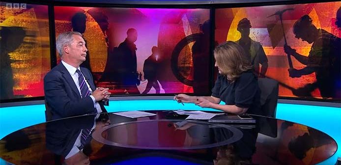 Συγκεκριμένα όταν η παρουσιάστρια του Newsnight Βικτόρια Ντέρμπισιρ (Victoria Derbyshire) είπε στον κ. Φάρατζ ότι: «Μια δημοσκόπηση του περασμένου μήνα έδειξε ότι το 53% των ανθρώπων λέει ότι ήταν λάθος το Brexit – περίπου ένας στους πέντε ψηφοφόρους του Leave (υποστηρικτές του Brexit) το έχει μετανιώσει» αυτός απάντησε: