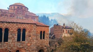 Οι φλόγες έχουν κυκλώσει την ιστορική μονή του Οσίου Λουκά στη Βοιωτία.