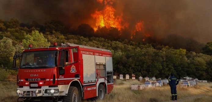 Η πυρκαγιά ξεκίνησε σε δέντρο στο δάσος της Βασιλικής σε δύσβατο σημείο νότια της κορυφής του Προφήτη Ηλία.