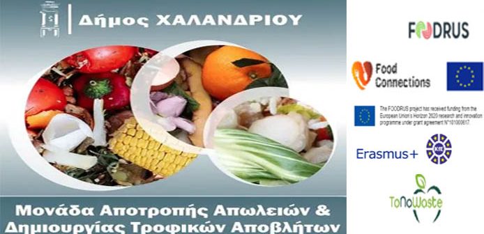 H Μoνάδα Αποτροπής Απωλειών Τροφών & Δημιουργίας Τροφικών Αποβλήτων του Δήμου Χαλανδρίου διοργανώνει την ημερίδα «Πρόληψη και μείωση τροφικών αποβλήτων», στο πλαίσιο του 3ου συνεδρίου Retaste στις 29 Σεπτεμβρίου 2023 στο Χαροκόπειο Πανεπιστήμιο Αθηνών.