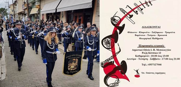 Η Φιλαρμονική του Δήμου Ιεράς Πόλεως Μεσολογγίου “Χρήστος Καψάλης” ανακοινώνει ότι οι εγγραφές των μαθημάτων για το νέο σχολικό έτος 2023-2024 αρχίζουν την Τετάρτη 30/8/2023.