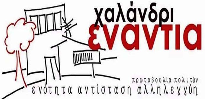Απέναντι στις παρατάξεις που επικαλούνται το νέο για να φέρουν μια ξαναζεσταμένη εκδοχή του παλιού , που οι δημότες γνωρίζουν καλά ότι ρήμαξε την πόλη τους, απέναντι σε μια διοίκηση που παρουσιάζει την στοιχειώδη διαχείριση σαν ανυπέρβλητη επιτυχία, καλούμε τους πολίτες του Χαλανδρίου να μην πάνε στις δημοτικές εκλογές με μειωμένες προσδοκίες. Την επόμενη τετραετία η πόλη θα αντιμετωπίσει ριζικούς μετασχηματισμούς, που θα αλλάξουν την φυσιογνωμία της και θα επιβαρύνουν την κοινωνική πλειοψηφία.