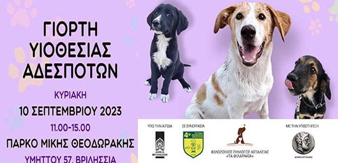 Ο Δήμος Βριλησσίων διοργανώνει γιορτή υιοθεσίας αδέσποτων, την Κυριακή 10 Απριλίου 2023, στο πάρκο Μίκης Θεοδωράκης, από τις 11:00 έως τις 15:00 (Υμηττού 57, Βριλήσσια).