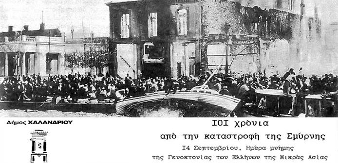 Με αφορμή την Ημέρα Εθνικής Μνήμης της Γενοκτονίας των Ελλήνων της Μικράς Ασίας, στις 14 Σεπτεμβρίου, ο δήμαρχος Χαλανδρίου Σίμος Ρούσσος, σημείωσε: «Κύλησαν 100 και πλέον χρόνια από τον μεγάλο ξεριζωμό. Οι παλιοί έφυγαν, οι μνήμες ξεθωριάζουν, όμως δεν θα επιτρέψουμε να χαθούν. Η πορεία του λαού μας, αυτά τα 101 χρόνια, καθορίστηκε από το μικρασιατικό ελληνισμό, που πλήρωσε βαρύ τίμημα, με το χαμό πάνω από 600.000 ανθρώπων και τον ξεριζωμό από τη γη της Ιωνίας, μετά από τρισχιλιετή παρουσία.