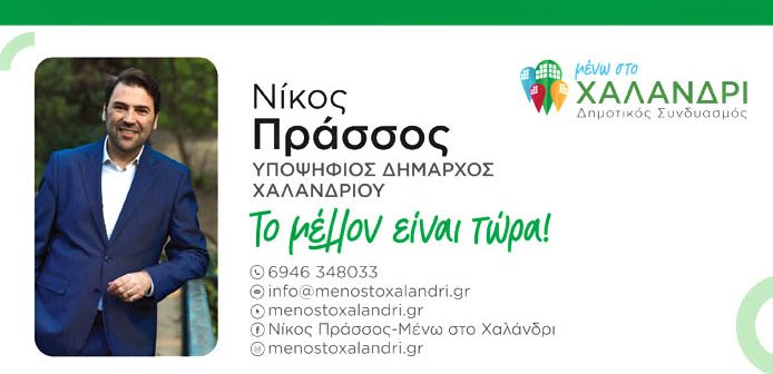Ο συνδυασμός «Μένω στο Χαλάνδρι», με επικεφαλής τον Νίκο Πράσσο ανεβάζει προεκλογικούς ρυθμούς, ενόψει της «μάχης» των αυτοδιοικητικών του Οκτωβρίου.