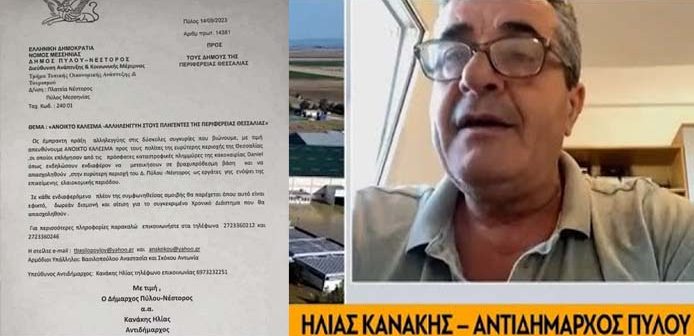 Αυτό ήταν μία ιδέα που άναψε φωτιές. Συγκεκριμένα ο δήμος απευθύνεται με επίσημο έγγραφό του, που υπογράφει ο αντιδήμαρχος Πύλου-Νέστορος, Ηλίας Κανάκης, καλεί τους πληγέντες οι οποίοι θρηνούν δικούς τους ανθρώπους αλλά και τις περιουσίες τους, μετά τις καταστροφές από την κακοκαιρία Daniel, να πάνε ως εργάτες γης για λίγο στην περιοχή. Μάλιστα, έκανε λόγο και για δωρεάν σίτιση, όπου είναι δυνατόν.