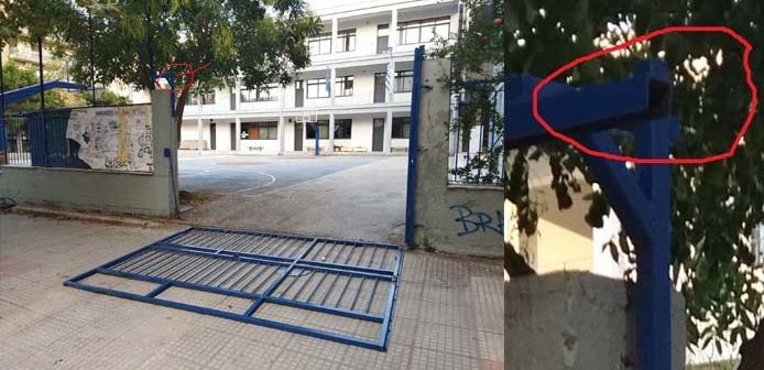 Χτες το βράδυ, γύρω στις 22:15, στην προσπάθειά μου να κλειδώσω την καγκελόπορτα και να ασφαλίσω το σχολείο, βίωσα ένα ισχυρό σοκ. Οι άλλοι συνάδελφοι μόλις είχαν φύγει κι εγώ έμεινα πιο πίσω, να τακτοποιήσω ένα διοικητικό θέμα. Τελειώνοντας, κλείδωσα το γραφείο, έβαλα τα πράγματά μου στο αυτοκίνητο, το οποίο, ευτυχώς, ανέβασα στο πεζοδρόμιο με την όπισθεν προς την είσοδο του σχολείου, και κατέβηκα να κλειδώσω. Η εξωτερική πόρτα, συρόμενη με δύο ρόδες που κυλούν πάνω σε μία ράγα, δεν μετακινούνταν εύκολα και, συνεπώς, δεν μπορούσα να την κλείσω και να την κλειδώσω. Έτσι, τηλεφώνησα σε έναν συνάδελφο που μένει κοντά στο σχολείο, να επιστρέψει, για να με βοηθήσει. Στην προσπάθεια να σύρουμε την πόρτα, ώστε να μπορέσουμε να την κλειδώσουμε, η πόρτα βγήκε από το σίδερο που τη συγκρατούσε στο πάνω μέρος της και έπεσε προς τον δρόμο, στο πεζοδρόμιο.