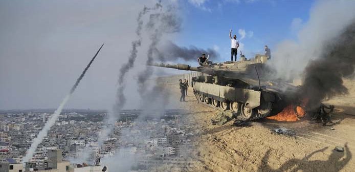Οι μαχητές της Χαμάς στη Λωρίδα της Γάζας πραγματοποίησαν μια άνευ προηγουμένου, πολυμέτωπη επίθεση στο Ισραήλ τα ξημερώματα του Σαββάτου, εκτοξεύοντας χιλιάδες ρουκέτες, καθώς δεκάδες μαχητές της Χαμάς διείσδυσαν στα βαριά οχυρωμένα σύνορα σε διάφορες τοποθεσίες από αέρα, ξηρά και θάλασσα και αιφνιδίασαν τη χώρα σε μια μεγάλη γιορτή.
