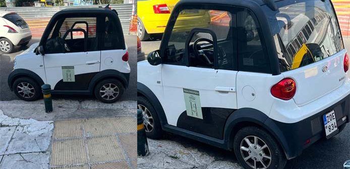 Στην φωτογραφία βλέπετε ένα αυτοκινητάκι του δήμου που έχει παρκάρει ΑΚΡΙΒΩΣ ΕΚΕΙ ΠΟΥ ΕΙΝΑΙ Η ΡΑΜΠΑ ΑΝΑΠΗΡΩΝ!