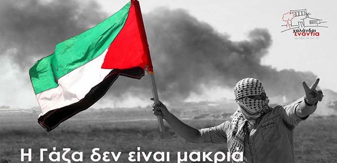 Εκδήλωση για τις εξελίξεις στην περιοχή και τους αγώνες του Παλαιστινιακού λαού, με θέμα «Η Γάζα δεν είναι μακριά», διοργανώνει η δημοτική παράταξη Χαλανδρίου – Πρωτοβουλία Πολιτών «Χαλάνδρι Ενάντια», την Τετάρτη 7 Νοεμβρίου και ώρα 8μμ., στο Κέντρο Νεότητας Δήμου Χαλανδρίου (Αντιγόνης & Δαναΐδων, Κάτω Χαλάνδρι), με ομιλητές τους: