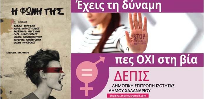Με την ευκαιρία της παγκόσμιας ημέρας για την εξάλειψη της βίας εναντίον των γυναικών 25 Νοεμβρίου, η Δημοτική Επιτροπή Ισότητας Χαλανδρίου (ΔΕΠΙΣ) και το Δίκτυο Γυναικών Συγγραφέων κατά της βίας οργανώνουν παρουσίαση του συλλογικού τόμου «Η ΦΩΝΗ ΤΗΣ», που κυκλοφορεί από τις εκδόσεις Καστανιώτη.