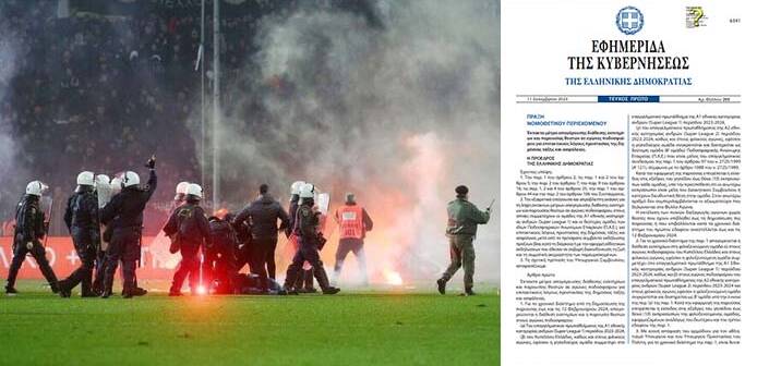 Όλες τις λεπτομέρειες των μέτρων κατά της οπαδικής βίας που ανακοινώθηκαν τη Δευτέρα περιλαμβάνει η Πράξη Νομοθετικού Περιεχομένου που δημοσιεύτηκε σήμερα, Τετάρτη.