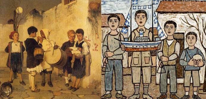 Τα παιδιά της εποχής κρατούσαν ένα ομοίωμα καραβιού που παρίστανε τον ερχομό του θεού Διονύσου. Άλλοτε κρατούσαν κλαδί ελιάς ή δάφνης στο οποίο κρεμούσαν κόκκινες και άσπρες κλωστές, στις οποίες έδεναν τις προσφορές των νοικοκύρηδων.