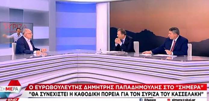 «Νομίζω ότι η Νέα Αριστερά έχει πολύ σημαντικότερες δυνατότητες από αυτό που καταγράφηκε στις πρώτες δημοσκοπήσεις», δήλωσε το πρωί της Τετάρτης ο ευρωβουλευτής Δημήτρης Παπαδημούλης στην τηλεόραση του ΣΚΑΪ και την εκπομπή «ΣΗΜΕΡΑ» με τους δημοσιογράφους Δημήτρη Οικονόμου & Άκη Παυλόπουλο,