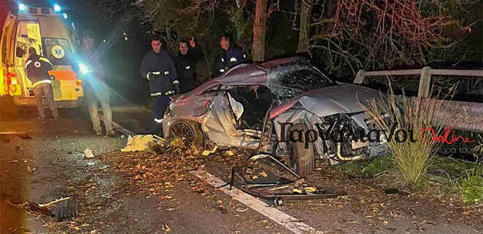Το 23χρονο αγόρι σκοτώθηκε ακαριαία, ενώ οι δύο άλλοι επιβαίνοντες εγκλωβίσθηκαν στην άμορφη μάζα σιδερικών στην οποία μετατράπηκε το αυτοκίνητο.