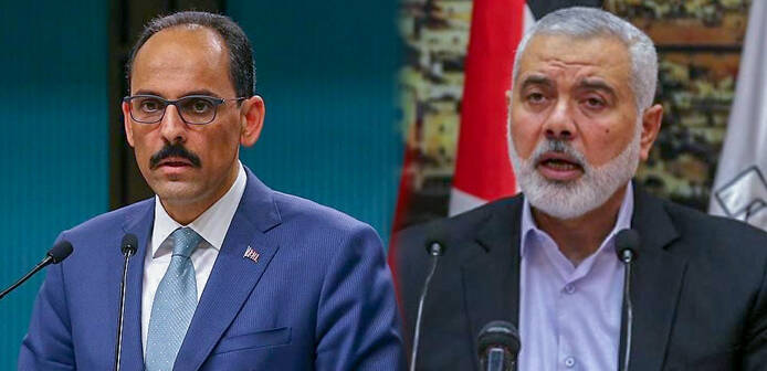 Ο επικεφαλής της Εθνικής Οργάνωσης Πληροφοριών της Τουρκίας (MIT) Ιμπραήμ Καλίν συναντήθηκε το Σάββατο με τον επικεφαλής του πολιτικού γραφείου της Χαμάς, Ισμαήλ Χανίγιε, στην πρωτεύουσα του Κατάρ, Ντόχα, για να συζητήσουν την κατάσταση στη Γάζα, μετέδωσε το τουρκικό πρακτορείο ειδήσεων Anadolu.