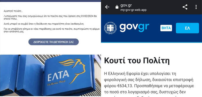 Το συγκεκριμένο μήνυμα- «μαϊμού» έχει υποτίθεται αποστολέα τα ΕΛΤΑ, που ζητούν συγγνώμη γιατί το πακέτο γύρισε πίσω πιθανότατα λόγω λάθους στη διεύθυνση. Το λάθος υποτίθεται ότι θα διορθωθεί αν πατήσεις το link και συμπληρώσεις τη φόρμα με τα στοιχεία σου.