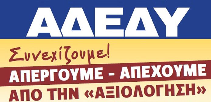 Η Εκτελεστική Επιτροπή της Ανωτάτης Διοίκησης Ενώσεων Δημόσιων Υπαλλήλων (Α.Δ.Ε.Δ.Υ.), κοινοποιεί το Γνωμοδοτικό Σημείωμα της Νομικής Συμβούλου της, στις ομοσπονδίες μέλη της σχετικά με το ζήτημα που σχετίζονται με την προκηρυγμένη «απεργία-αποχή» από τις διαδικασίες της αξιολόγησης του ν. 4940/2022