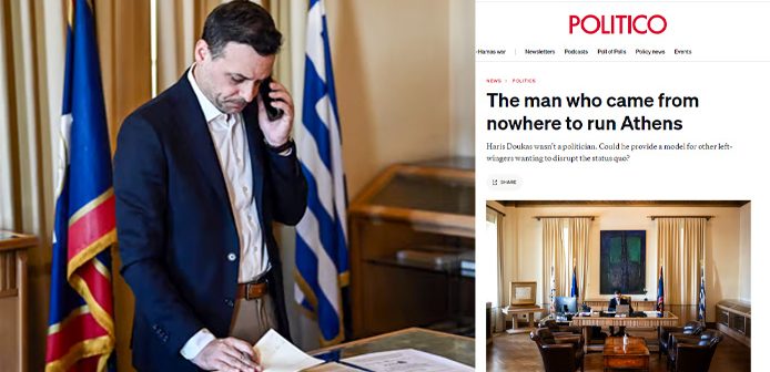 Με ένα εκτενές αφιέρωμα στο νέο Δήμαρχο Αθηναίων, Χάρη Δούκα και με τίτλο «Ο άνθρωπος που ήρθε από το πουθενά για να τρέξει στην Αθήνα – ThemanwhocamefromnowheretorunAthens» η δημοσιογράφος του αμερικάνικου περιοδικού Politico, Nektaria Stamouli, αναφέρεται στην πορεία του νέου Δημάρχου, τις δυσκολίες και τις εκδικητικές κινήσεις που δέχθηκε από την παλιά Διοίκηση του Δήμου Αθηναίων αλλά και από την κεντρική Κυβέρνηση του θείου του προηγούμενου Δημάρχου, Κώστα Μπακογιάννη.