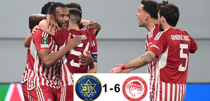 Ο Ολυμπιακός διέλυσε 6-1 την τυπικά γηπεδούχο Μακάμπι Τελ Αβίβ στην παράταση και έγινε η πρώτη ομάδα στα χρονικά των ευρωπαϊκών κυπέλλων που ανατρέπει διαφορά τριών γκολ εντός έδρας ήττας, αφού είχε χάσει 4-1 στο «Γεώργιος Καραϊσκάκης». Έτσι, η ελληνική ομάδα προκρίθηκε στους “8” του Europa Conference League.